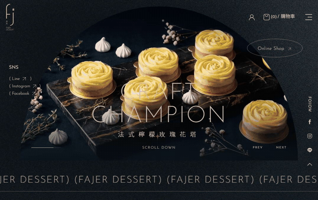 設計風格與整體氛圍:網站整體風格偏「法式甜點品牌+輕電商」路線,以大圖視覺與產品導購並行呈現。首頁用主視覺輪播帶出主打品項,並以「宅配專區/生日蛋糕/訂購流程」等區塊快速分流需求,讓訪客一進站就能理解品牌主軸是「職人手作、法式工藝、可訂購」。整體氛圍乾淨、有質感,重點放在甜點攝影與品牌故事。 網站架構 UI/UX:UI 架構清楚,採用常見品牌電商動線:上方主選單+會員登入註冊+購物車,讓使用者能快速切換「了解品牌」與「直接購買」兩種意圖。首頁亦提供快速入口,並在下方提供聯絡與資訊區塊,整體 UX 以「最短路徑完成選購」為核心,對首次訪客與回購客都友善。 內容表現與技術細節:首頁 Banner 以大圖輪播呈現主打商品與系列,能在第一屏快速建立記憶點。中段採用圖像+短文案的卡片式設計,資訊密度剛好、易掃讀,有效引導至購買或流程說明頁。商品區則以縮圖卡片呈現「品名+簡述+價格+加入購物車」,導購語意明確,能提高 CTA 行為。